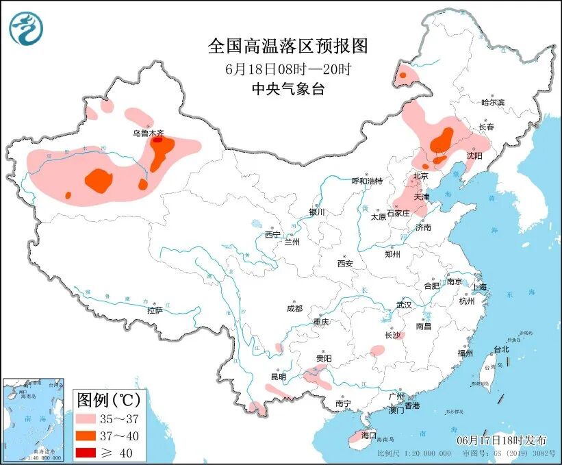 中央气象台17日18时继续发布高温黄色预警:预计18日白天,内蒙古东南部和中部、辽宁中部和西部、新疆南疆盆地、北京中南部、天津中西部和南部、河北中南部和东北部、云南南部、广西西部、海南岛西北部等地有35~36℃高温天气,其中,内蒙古东南部、辽宁西部、新疆南疆盆地等地的部分地区最高气温37~39℃,局地可达40℃以上。