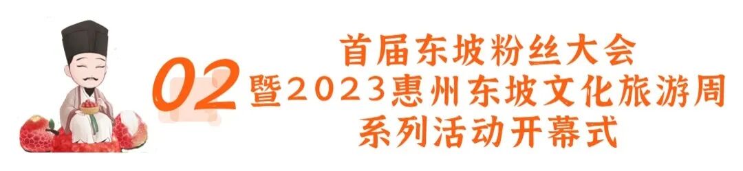 ☛活动内容:围绕传播东坡文化,讲好东坡故事,以国内知名东坡文化研究专家学者前来参加东坡粉丝大会开幕式为契机,举行“打造岭南东坡文化中心”研讨会,研究惠州作为岭南东坡文化核心承载地,如何更好传承并发扬好东坡文化,打造城市文旅IP,助推惠州文旅产业高质量发展。