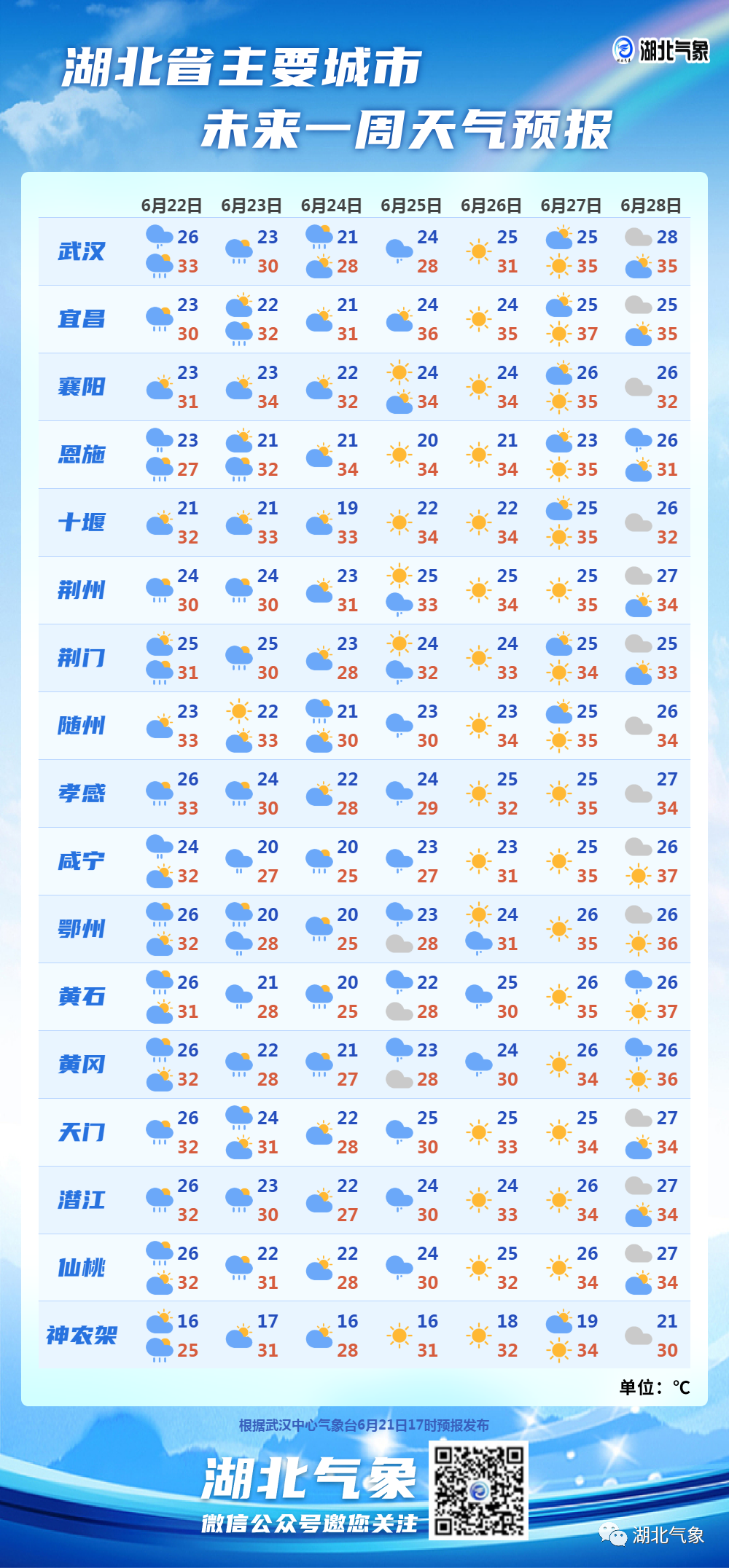 湖北省主要城市未来一周天气预报