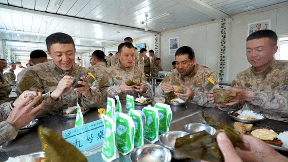 “妈,我和战友们都吃上粽子了