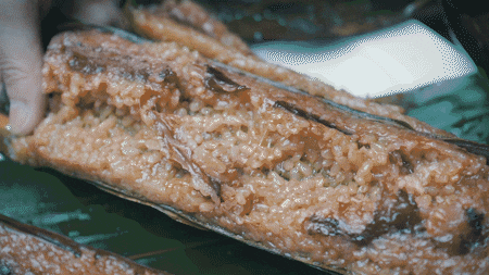 沙虫、海虾、乌贼、鲍鱼、蟹黄……被糯米和粽叶包裹,在慢火的蒸煮下,鲜味充分融入了糯米之中,一口咬下,鲜香绕“齿”三日~