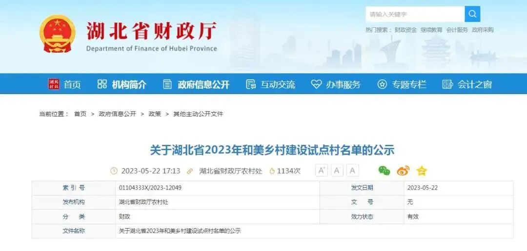 湖北省财政厅发布