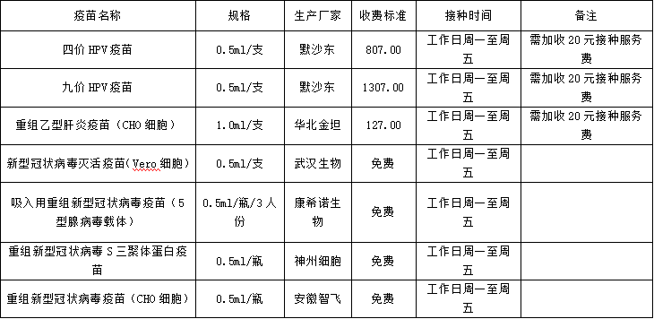 本中心现开放以下成人疫苗接种,请广大市民朋友按需预约接种。
