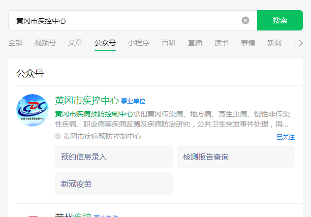 1微信搜索“黄冈市疾控中心”公众号并关注。