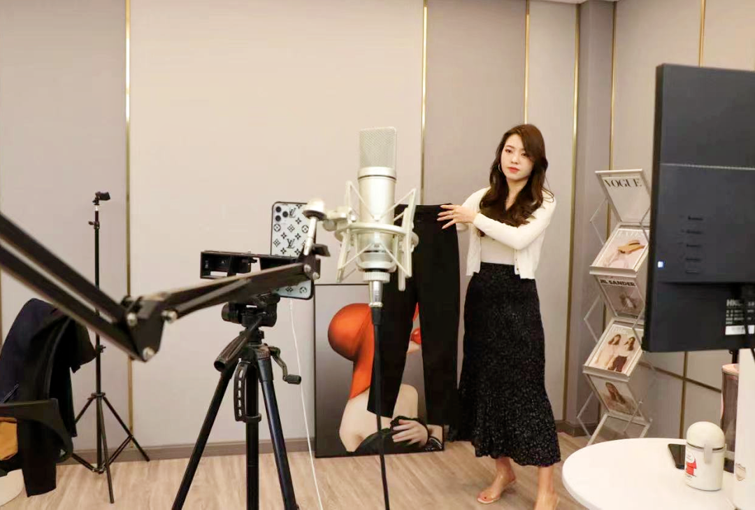 华泰服装电商街一家服饰公司的主播正在直播带货。 (资料图)