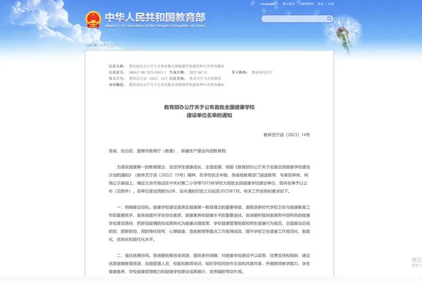 2022年,教育部办公厅印发《关于实施全国健康学校建设计划的通知》,决定“十四五”期间,重点支持一批有条件的学校建成全国健康学校。