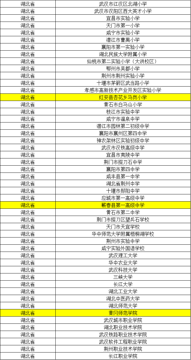 名单显示,在学校自主申报、各省级教育部门遴选推荐、专家组审核、网络公示基础上,此次有1075所学校被确定为首批全国健康学校建设单位,建设周期为2年。湖北有50所学校入选,其中3所在黄冈,具体如下: