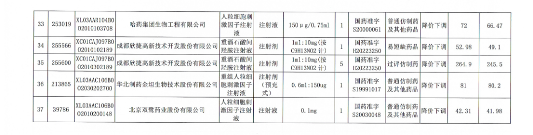 调整挂网价的已挂网药品共37个,涉及23家企业21个通用名。
