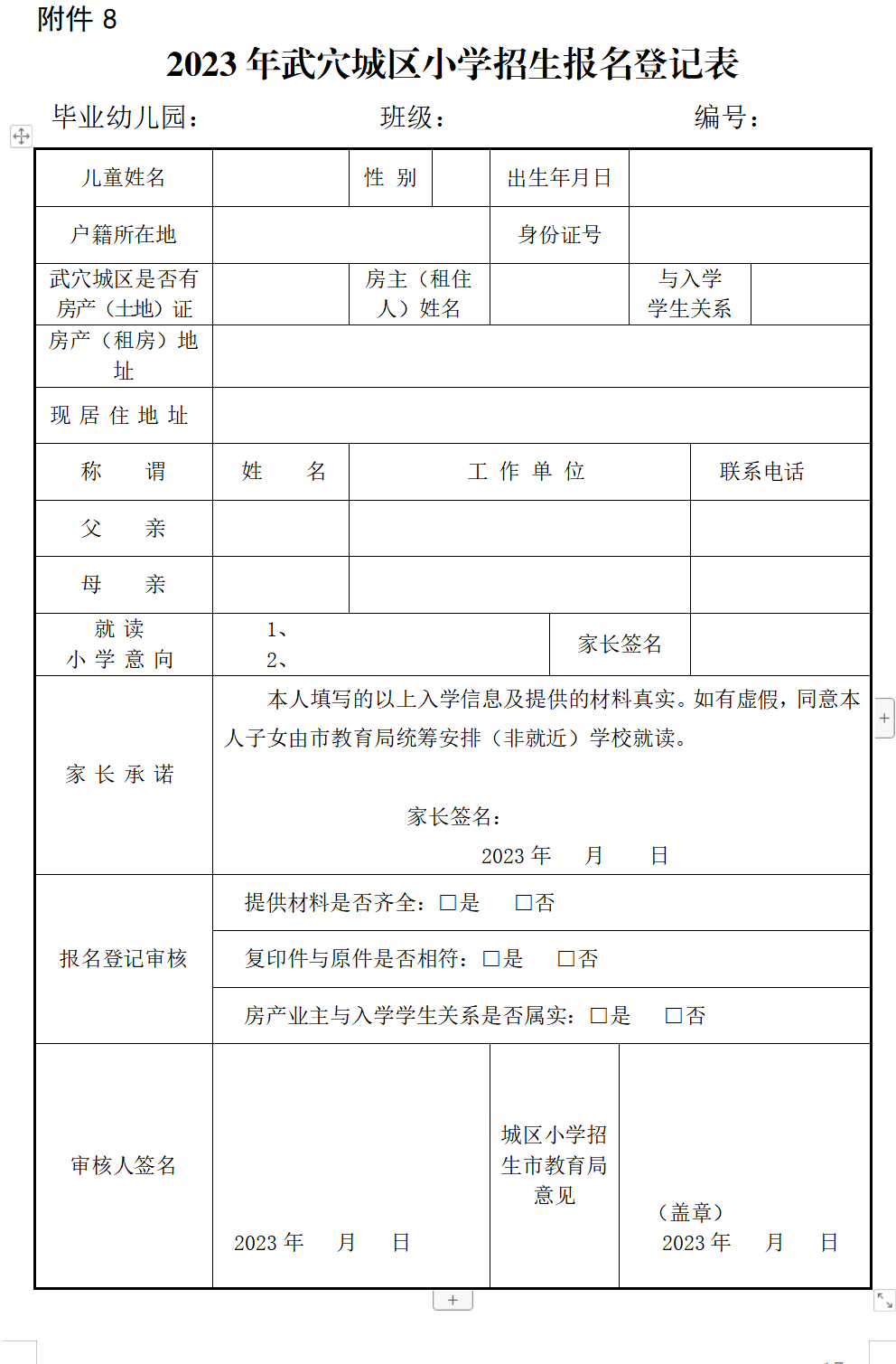 8.2023年武穴城区小学招生报名登记表