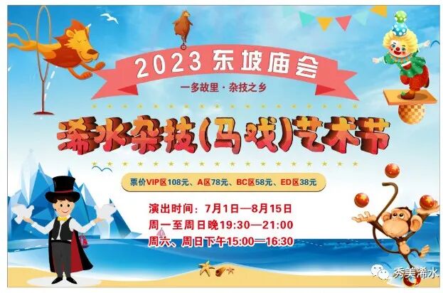 杂技、马戏(狮子、熊、猴等)、滑稽、魔术