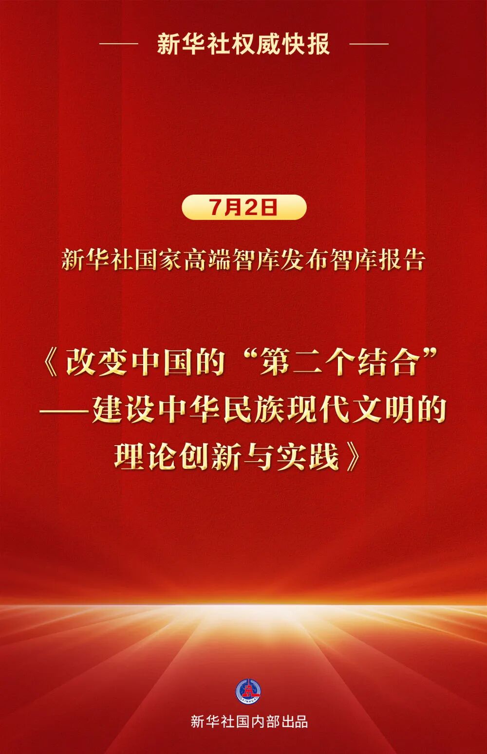 7月2日,新华社国家高端智库向全球发布智库报告《改变中国的“第二个结合”——建设中华民族现代文明的理论创新与实践》。