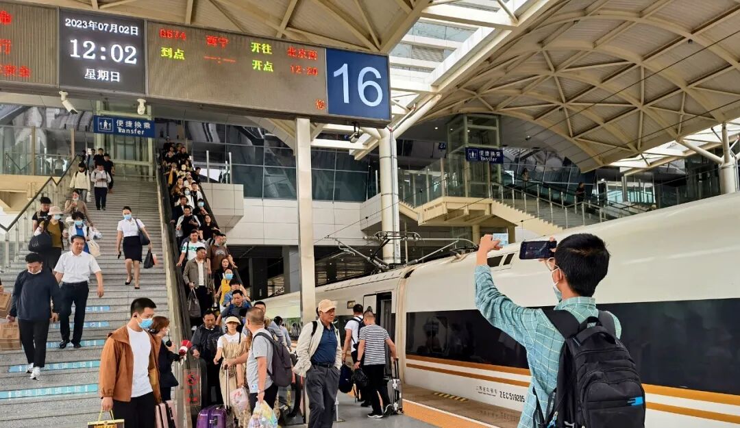 2日,G674高铁列车从西宁站驶出,于当日22时51分抵达北京西站。这是青藏高原首次开行G字头高铁,直达首都北京。