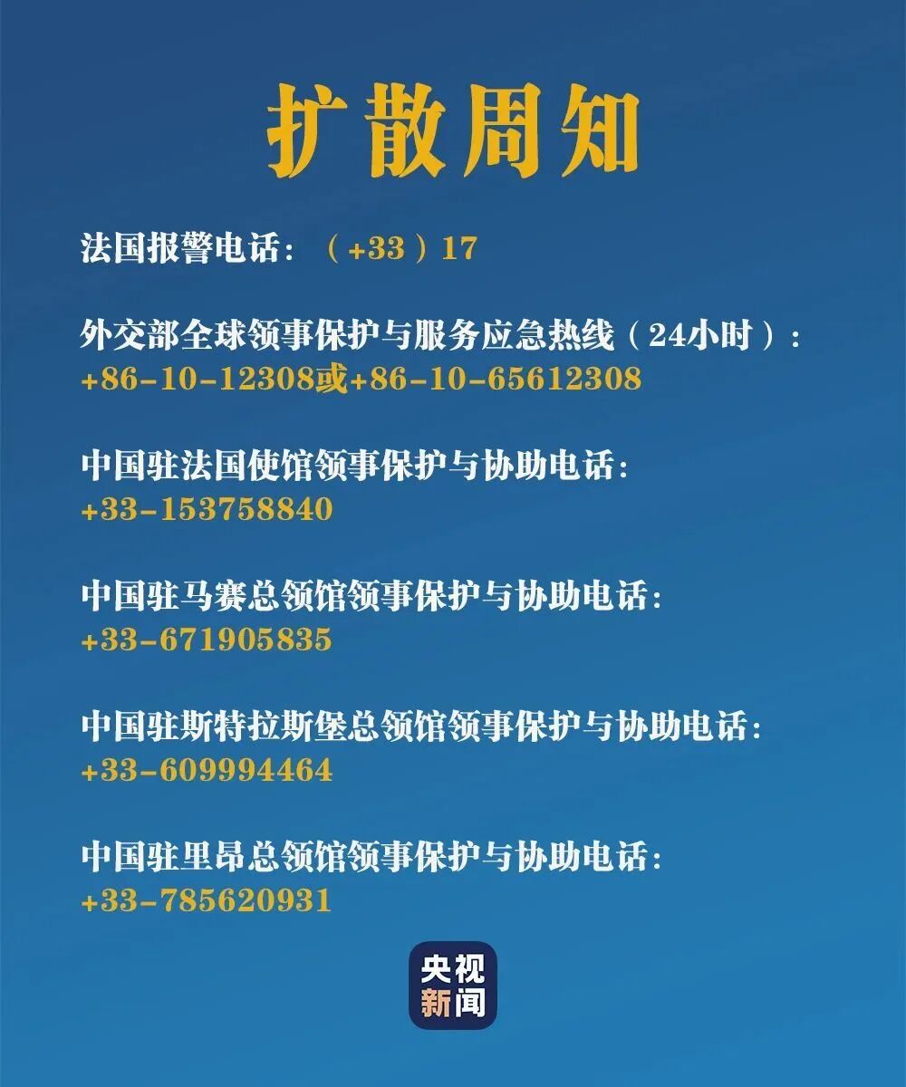近日,法国多地持续发生骚乱。外交部2日提醒,在法中国公民加强安全防范,如遇紧急情况,请及时报警并联系中国驻法国使领馆寻求协助。详情