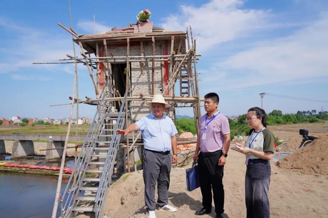 图为黄梅县苦竹乡纪委在城区生态补水工程引水闸项目现场开展专项治理监督检查
