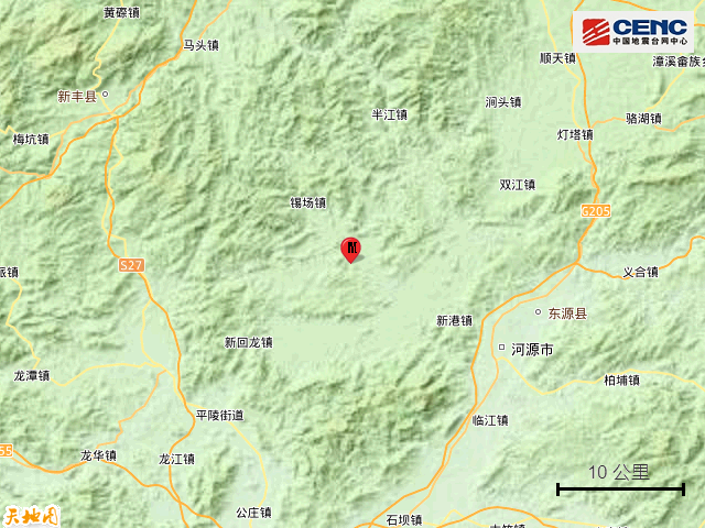 此前,7月3日20时57分在广东河源市东源县发生3.7级地震,震源深度9公里,震中位于北纬23.85度,东经114.50度。