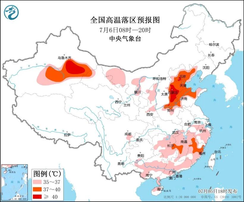 中央气象台5日发布高温橙色预警,预计6日白天,河北大部、北京、天津、山东中北部、河南北部、江西中部、福建中部、南疆盆地东部等地部分地区最高气温37~39℃,北京东部、河北中南部、河南西北部等地部分地区可达40℃或以上。