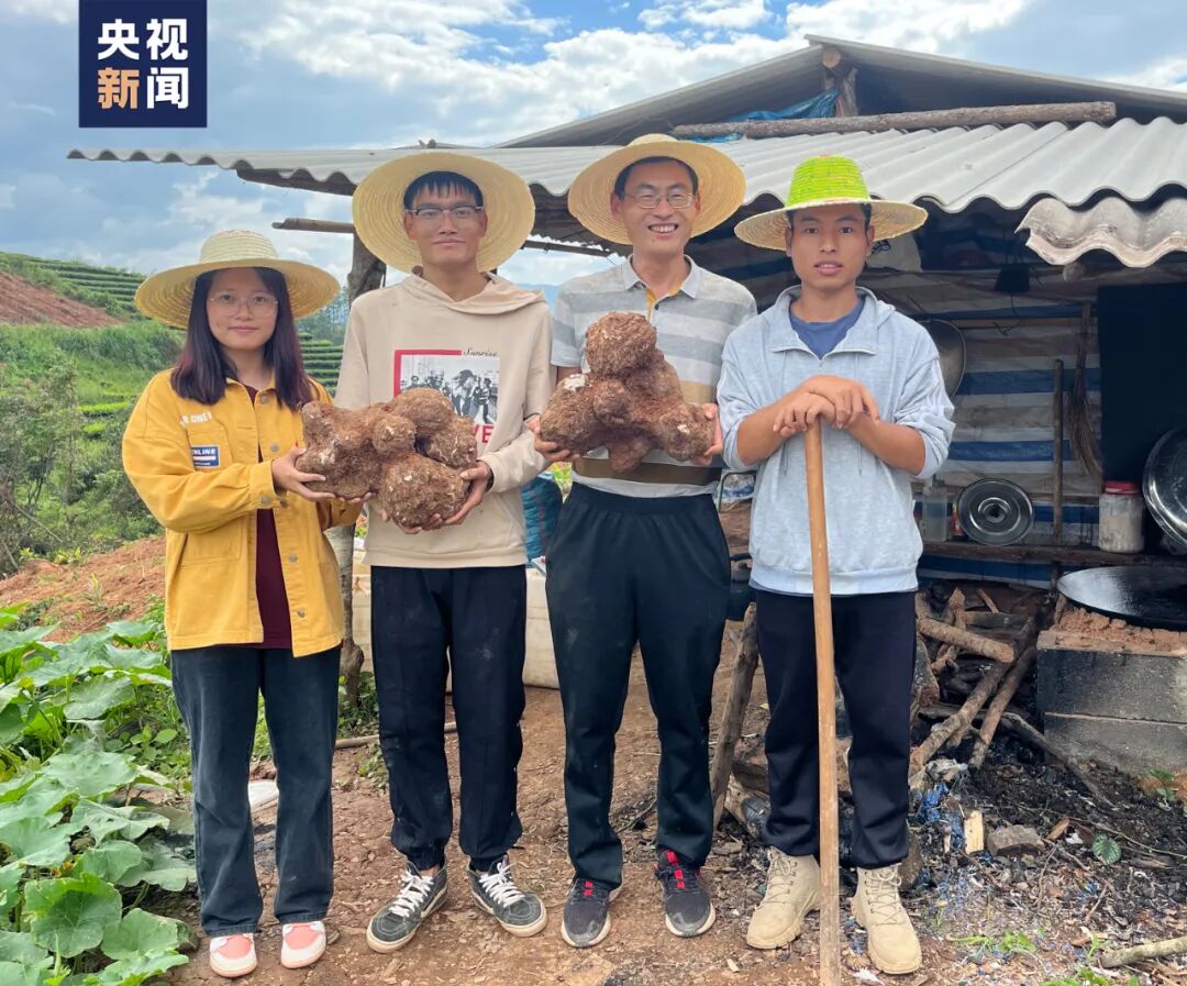 △茯苓新菌株推广种植测产(图左二为丁同学)