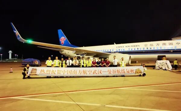 此外从武汉天河机场起飞直飞泰国首都曼谷武汉—曼谷航线是南航在武汉恢复的第一条东南亚航线班期从此前的每周1班增至每周7班
