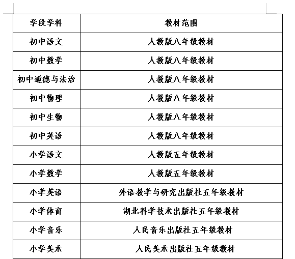 (1)根据中小学现行使用教材的实际情况,本次面试说课范围确定如下: