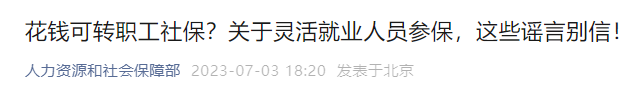 如果灵活就业人员以个人身份参加企业职工基本养老保险,那么与企业职工参加的一样,不存在“灵活就业人员社保”和“职工社保”的说法,更不存在两者互转的问题。