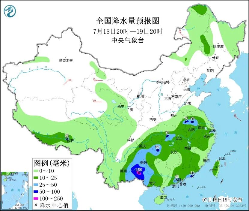 中央气象台18日18时继续发布暴雨蓝色预警:预计,18日20时至19日20时,广东沿海、广西西部、云南东南部、贵州中西部和北部、湖南西部、湖北中部、安徽中北部等地的部分地区有大到暴雨,其中部分地区有大暴雨;上述部分地区伴有短时强降水,局地有雷暴大风等强对流天气。