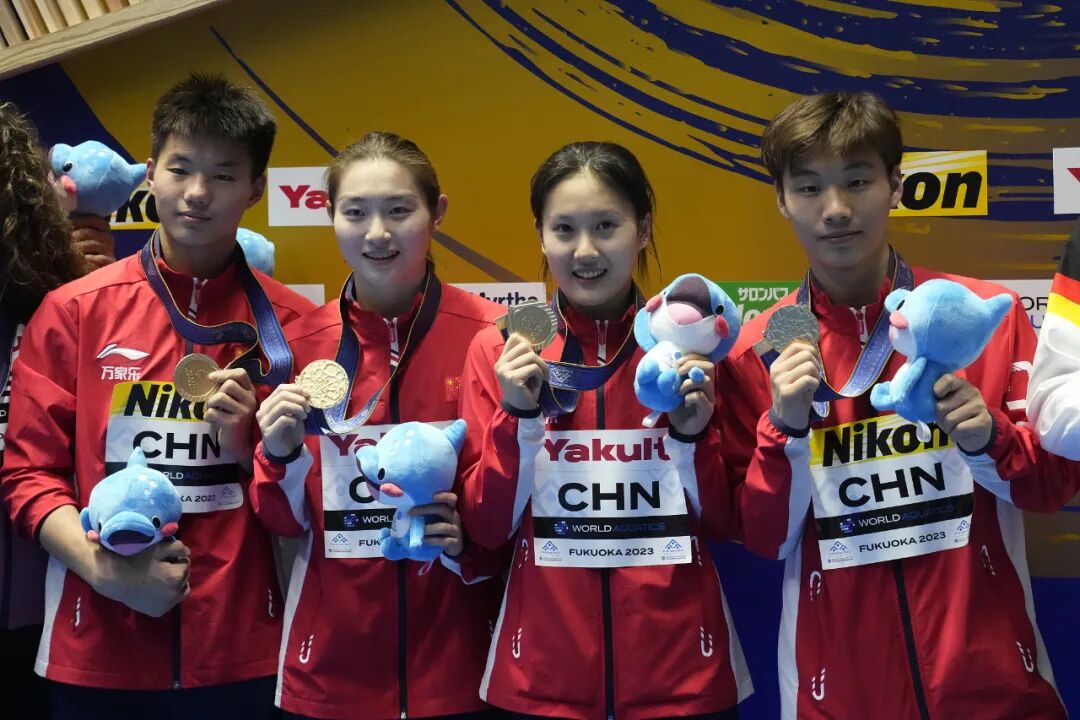 北京时间18日,2023世界泳联锦标赛跳水混合团体决赛,由白钰鸣、掌敏洁、郑九源、司雅杰组成的中国队以489.65分夺冠。