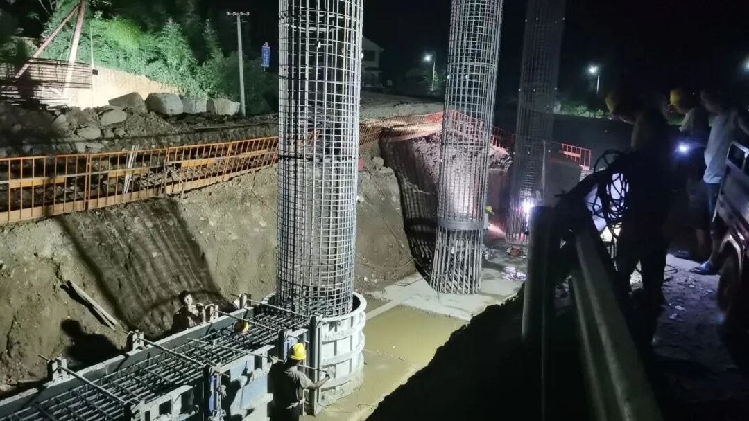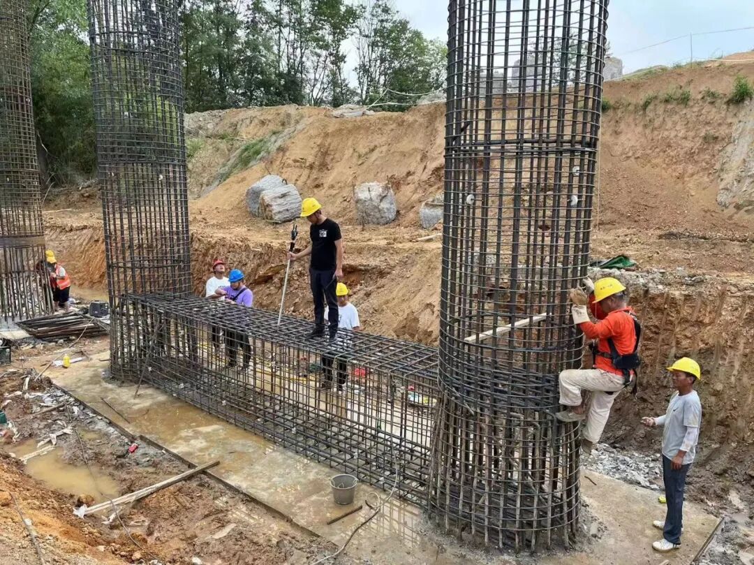 胡坝大桥位于刘河镇胡坝村境内,为跨越水塘而设,目前已完成桩基24根、桥台3个、墩柱12根、地系梁6个;黄坪大桥位于刘河镇胡坝村境内,为跨越黄平河而设,目前已完成桩基59根、墩柱34个、地系梁17个、盖梁3个、桥台3个;S406株大线分离式大桥位于刘河镇汤畈村境内,为跨越S406株大线而设,目前已完成桩基32根、墩柱4根、地系梁3个、盖梁9个、桥台3个;汤畈中桥位于刘河镇汤畈村境内,为跨越刘河互通 A 匝道而设,目前已完成桩基30根。当前四座桥的下构工程已完成总工程量的52%。蕲太二标段狮子互通土建工程