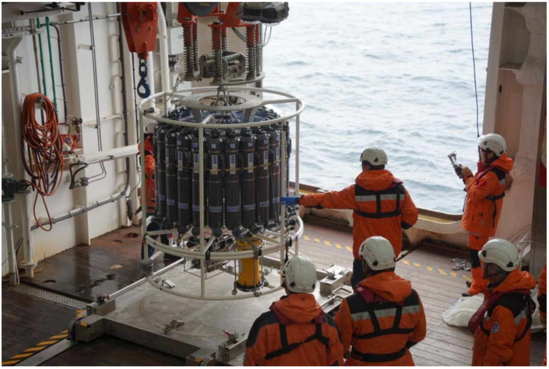 22日,中国第13次北冰洋科学考察队在白令海公海海域进行大洋科考作业演练。