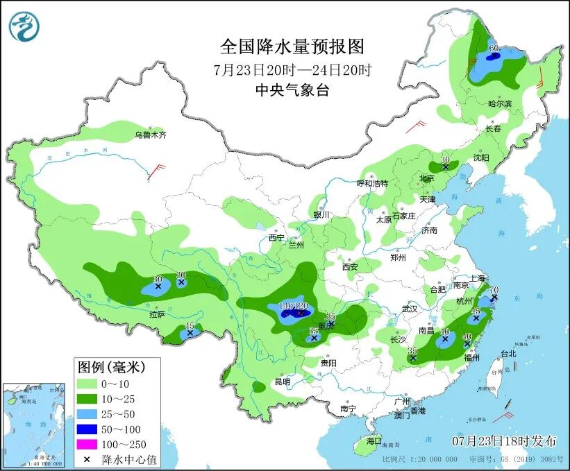 中央气象台23日18时继续发布暴雨蓝色预警,预计23日20时至24日20时,四川盆地西部和中南部、重庆南部及黑龙江西部、浙江中南部、福建中北部、江西中南部、湖南东南部、西藏东南部和北部等地部分地区有大到暴雨,其中,四川盆地西南部等地局部地区有大暴雨。上述部分地区伴有短时强降水,局地有雷暴大风等强对流天气。