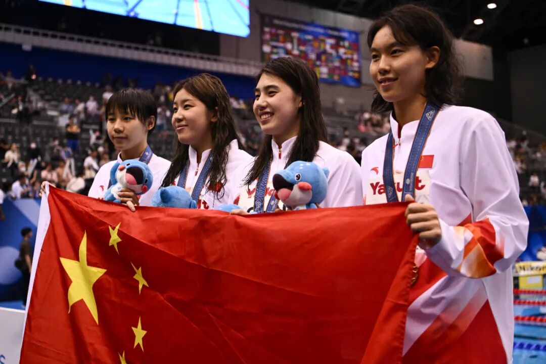 23日,2023世界泳联锦标赛女子4x100米自由泳接力赛中,由程玉洁、杨浚瑄、吴卿风和张雨霏组成的中国队以3分32秒40夺得铜牌,并打破亚洲纪录。