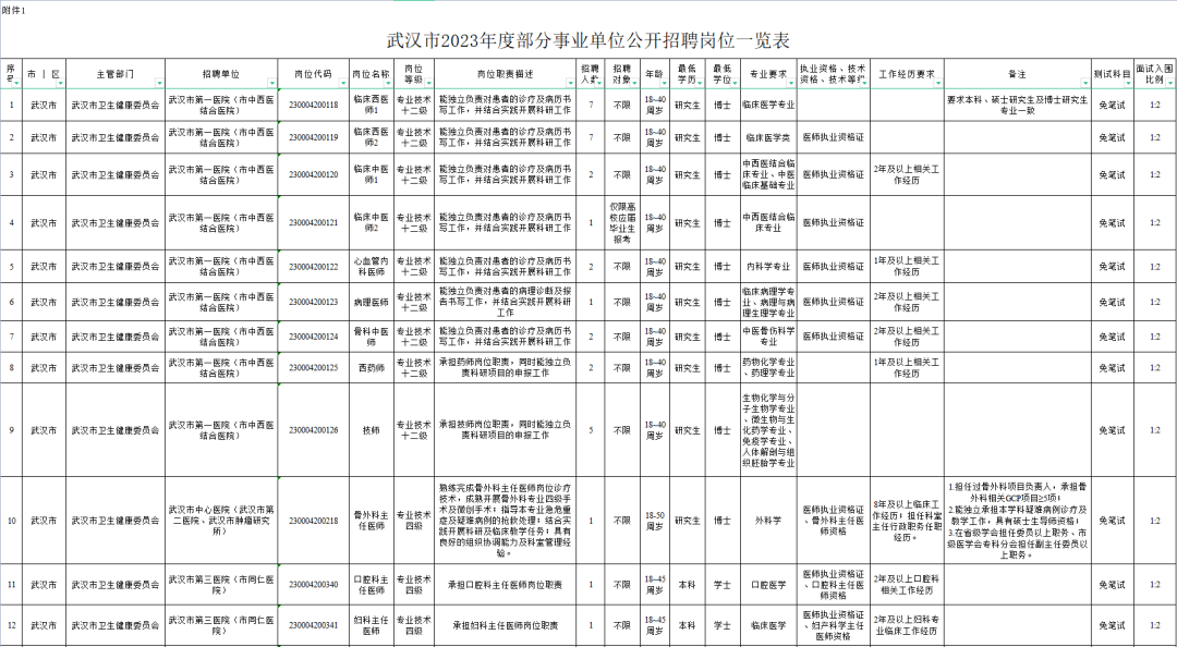 招聘单位、招聘人数及岗位条件等详见《武汉市2023年度部分事业单位公开招聘岗位一览表》,有关报考政策等详见《武汉市2023年度部分事业单位公开招聘报考指南》,应聘人员可于2023年7月25日至8月1日通过武汉市人事考试院官网查询。
