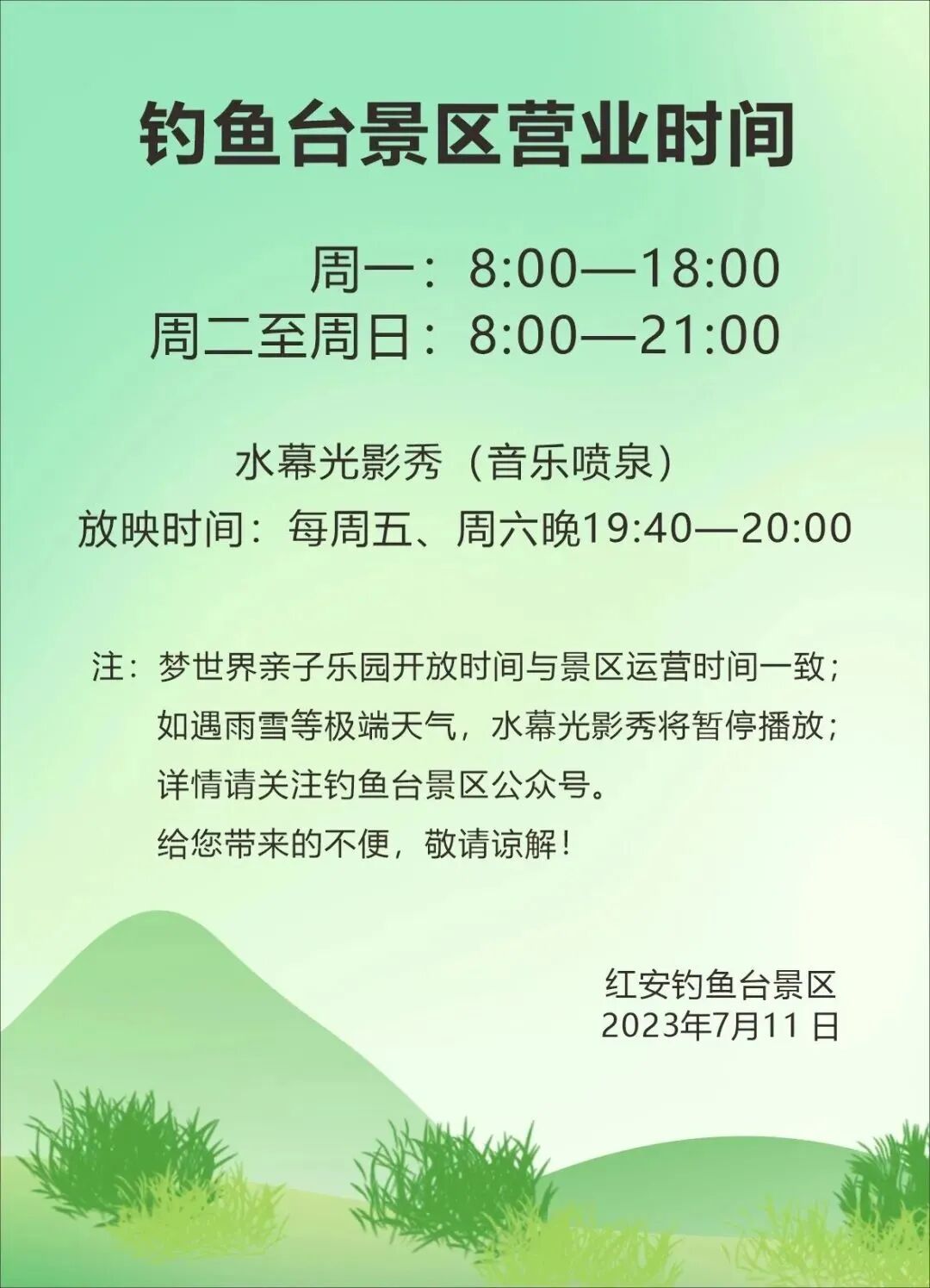 注意关注园区营业时间哦