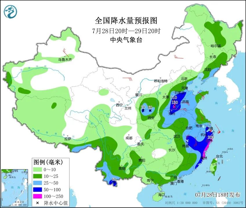 中央气象台28日18时继续发布暴雨橙色预警,预计28日20时至29日20时,河北南部、河南北部、浙江东部、福建东北部等地部分地区有大暴雨,部分地区伴有短时强降水,局地有雷暴大风等强对流天气。