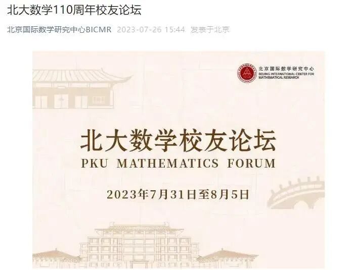 北大数学110周年校友论坛发布活动预告