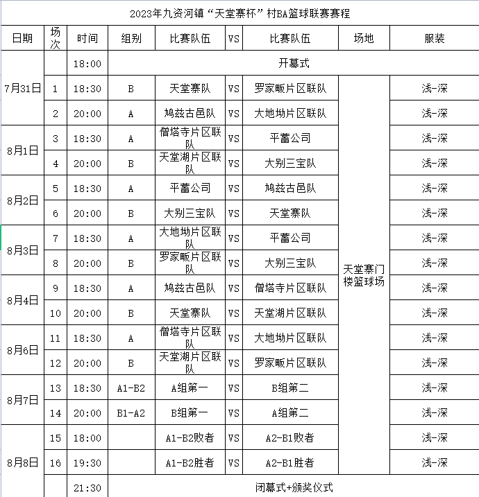 本次篮球赛将于7月31日晚