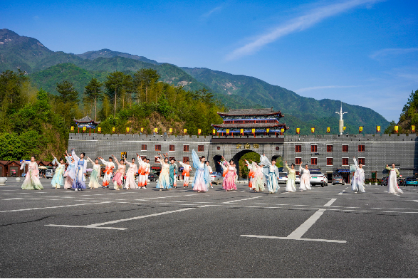 在湖北罗田天堂寨景区门楼停车场盛大开赛