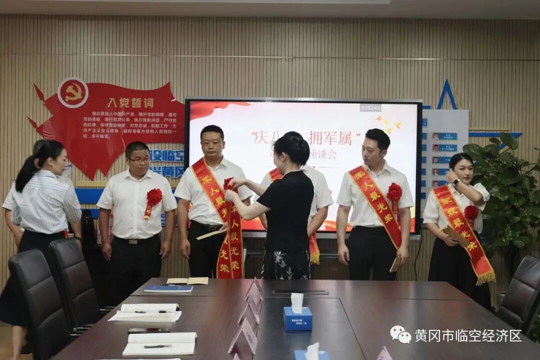 为庆祝中国人民解放军96周年,弘扬军人优良作风,助推空港经济发展,8月1日上午,市临空经济区举行“庆八一 拥军属”双拥共建活动。党工委书记周银芝、副书记王梅春,原党工委委员、纪工委书记陈绪平以及临空经济区退役军人和现役军人家属参加活动。