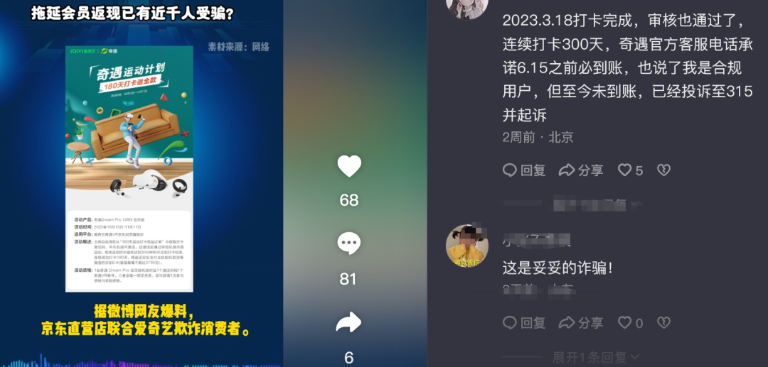很多网友开始在网上分享起诉奇遇VR主体青岛梦想绽放科技有限公司的经验贴,鼓励更多用户用法律手段维权,更有网友质疑这种行为是否涉嫌诈骗。