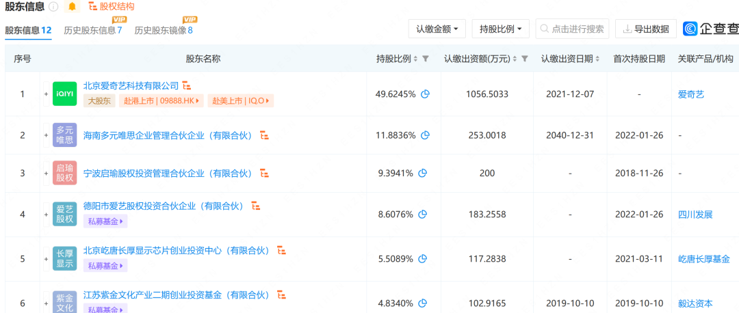 爱奇艺目前是梦想绽放第一大股东,持股49.62%,爱奇艺创始人、CEO龚宇也担任后者董事长。