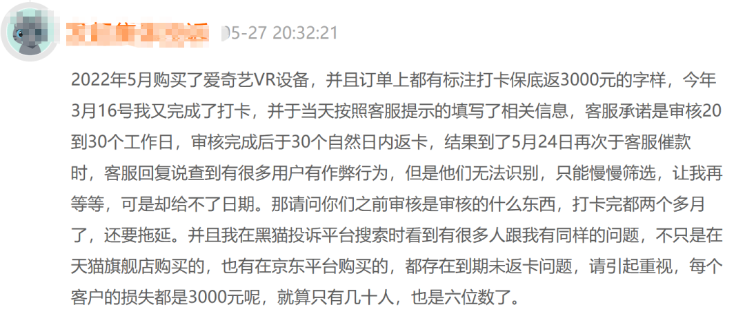 此外,梦想绽放为吸引消费者购买VR设备的“打卡返现”活动,更被曝出兑现难问题。