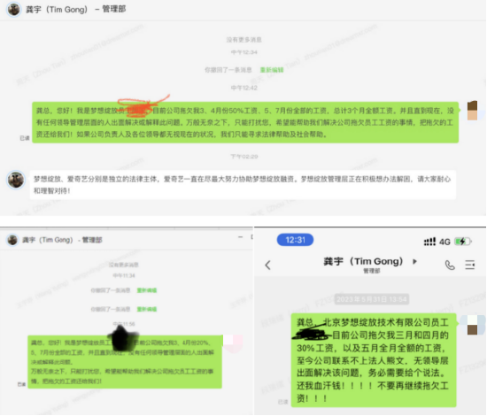 知情人士告诉财联社《科创板日报》记者,从今年3月开始,公司就开始缓发工资,大部分人是发一半或70%,五月和七月则整月没发工资。该人士于今年6月从梦想绽放离职,其表示,公司已经拖欠自己两个月工资,在离职的时候,“他们(梦想绽放)也没有签署任何保证,明确拖欠的薪资何时发放”。