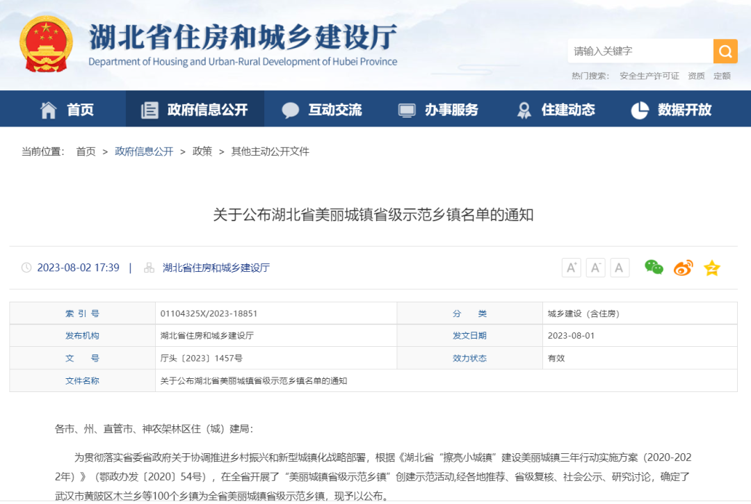 湖北省住建厅印发《关于公布湖北省美丽城镇省级示范乡镇名单的通知》,确定了100个乡镇为全省美丽城镇省级示范乡镇,其中,黄冈10个乡镇在列。(详情)