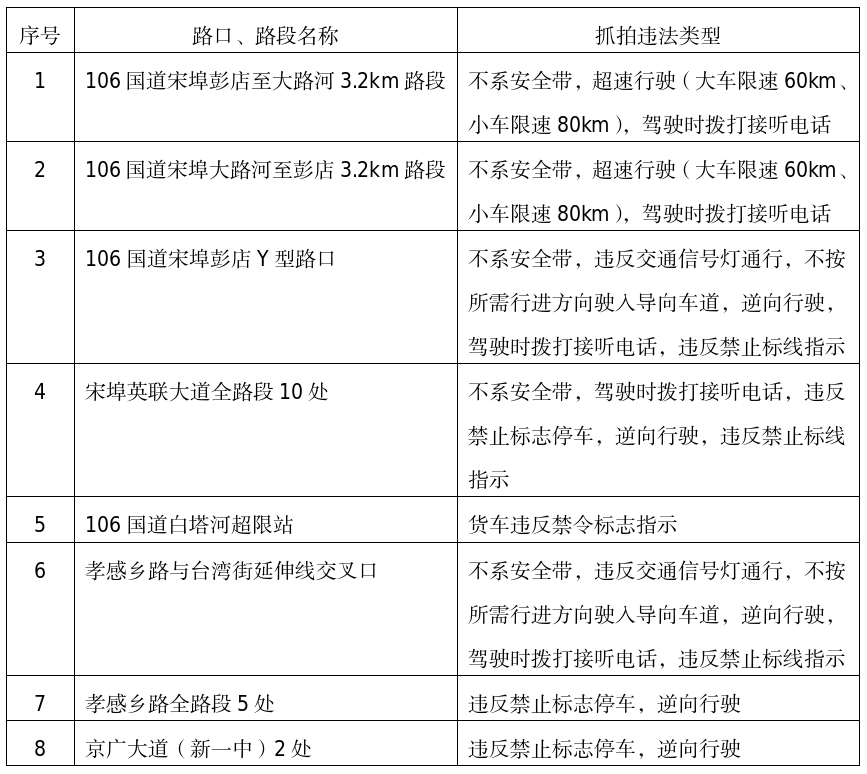 9月1日起,麻城市部分路口、路段将增设电子警察交通违法抓拍点位,具体如下: