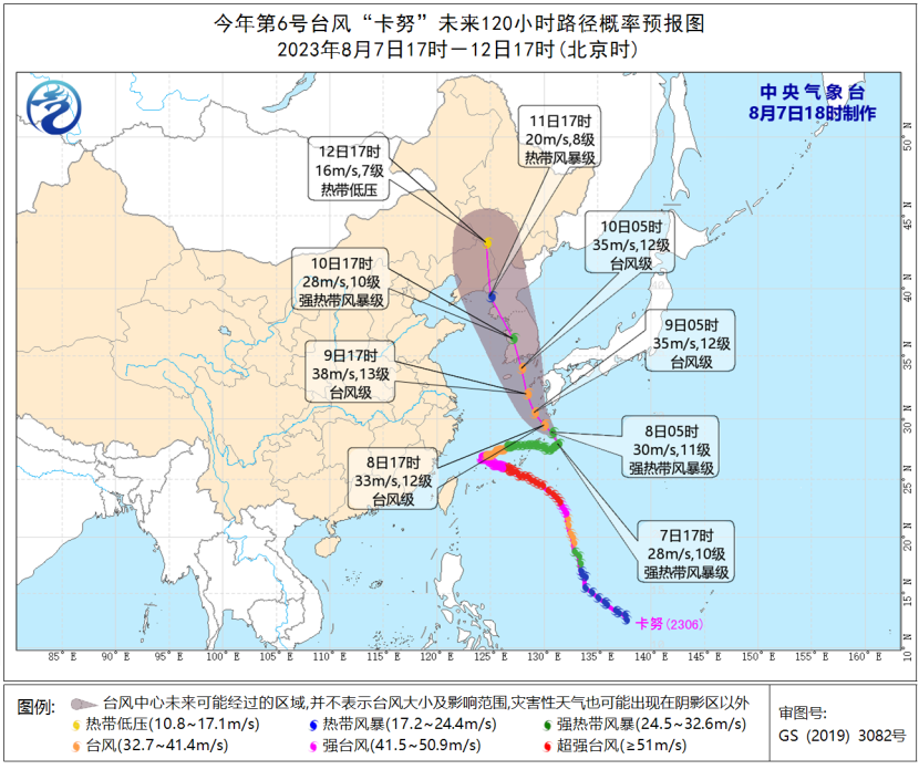 中央气象台7日18时继续发布台风蓝色预警:今年第6号台风“卡努”(强热带风暴级)的中心7日下午位于日本鹿儿岛南偏东方大约400公里的西北太平洋洋面。预计“卡努”将以每小时5—10公里的速度向偏北转北偏西方向缓慢移动,并向朝鲜半岛南部沿海靠近。