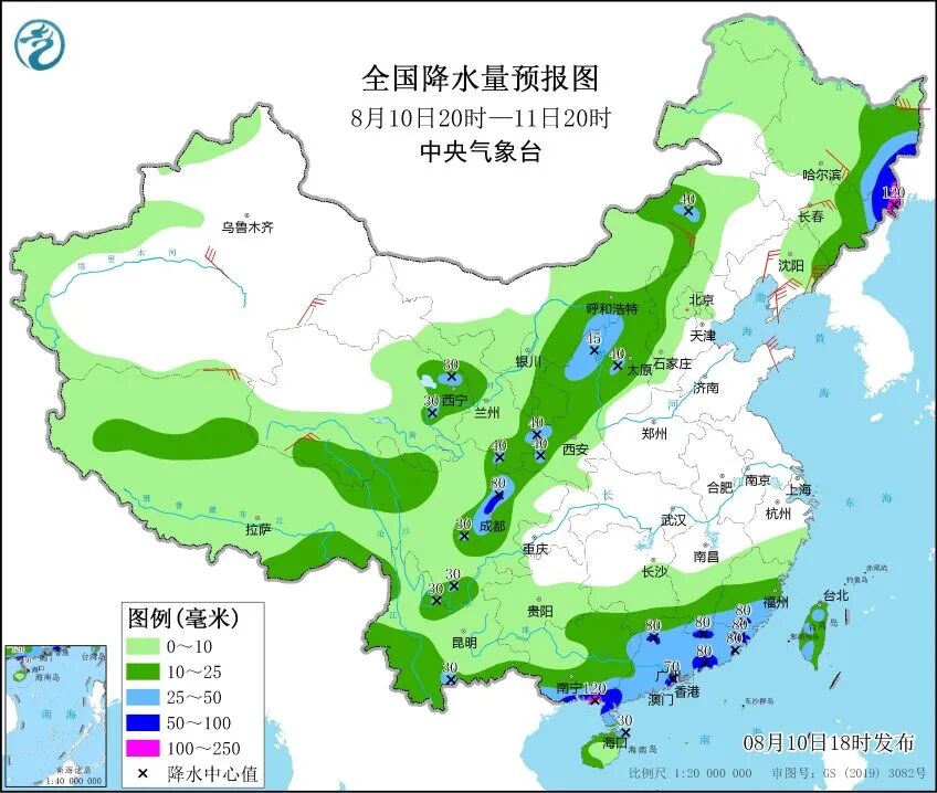 中央气象台10日18时继续发布暴雨蓝色预警,预计10日20时至11日20时,黑龙江东南部、吉林东北部、青海东北部、甘肃东部、陕西北部和西南部、内蒙古河套地区、山西中部和西北部、四川盆地西部、江西南部、福建南部、广东、广西南部、云南南部、海南岛东北部、台湾岛等地的部分地区有大到暴雨。