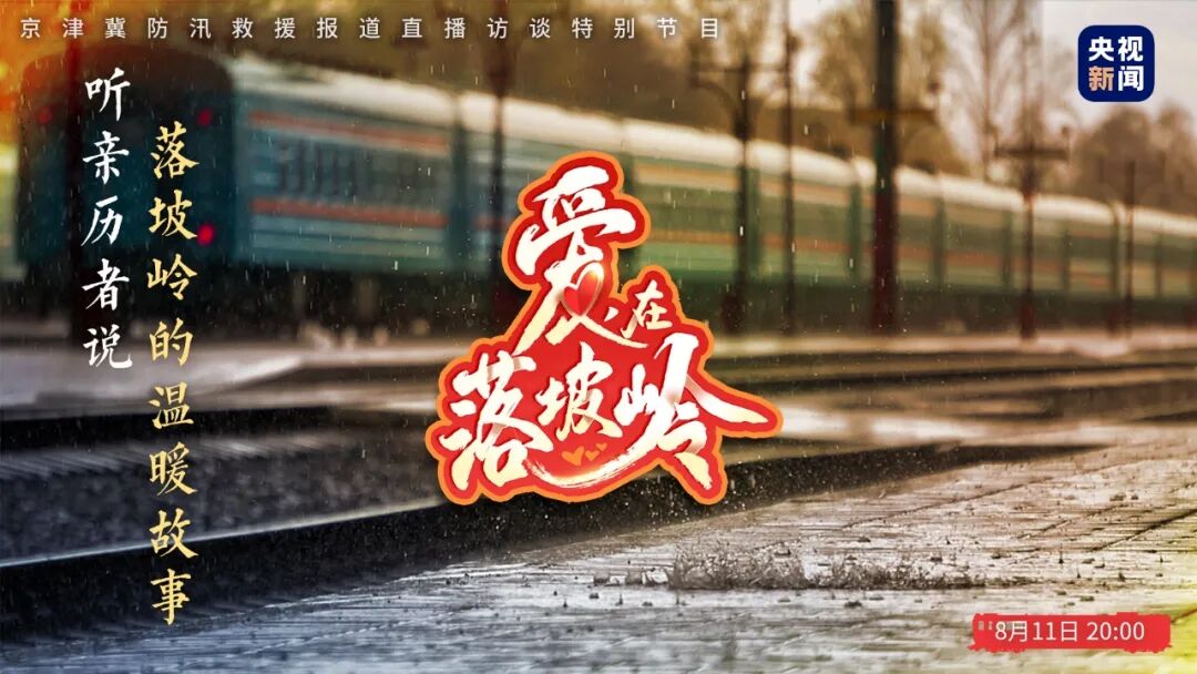 暴雨如注,交通受阻,K396次列车被迫滞留北京门头沟落坡岭站,四天三夜,K396次列车经历了哪些惊心动魄又感人至深的故事?8月11日20:00到22:30,央视新闻特别推出直播访谈《爱,在落坡岭》,邀请此次暴雨灾情的亲历者、见证者做客直播间,讲述“脱险”背后的温暖,致敬风雨中的守护。观看直播还有机会获得央视新闻特别定制的“爱,在落坡岭”T恤及徽章。
