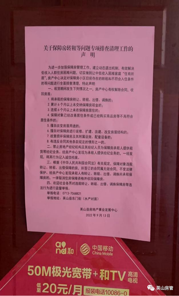 为进一步规范公租房住房管理,让其更好发挥惠民利民的作用,英山县全面开展公租房专项清理整治行为,重点整治清理公租房转租转借,长期拖欠租金等违规现象。
