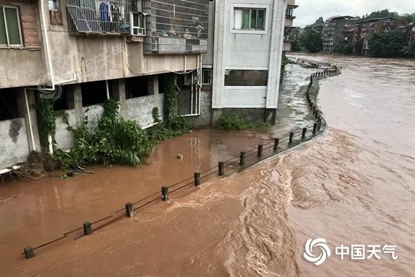 8月12日凌晨,四川内江出现强降雨,东兴区河水猛涨。(图/张春辉)