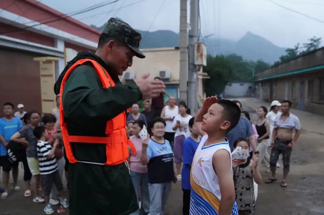 当天,因铁路损毁无法继续前进,救援队伍暂时改变计划,在妙峰山镇水峪嘴村开展救援,将5名受困村民转移至安全地带后,武警官兵返回门头沟三家店车站休整,第二天一早又再赴救援一线。