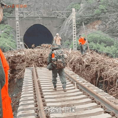 王峰作为指挥员,一路都走在前面,他要最先面临未知的路况,对山体和冲垮的路段进行分析研判:“铁路沿线全是被大水浸泡的山体,稍有不慎就会被山体滑坡和泥石流掩埋。”